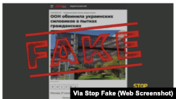 El informe de la ONU mencionado, que abarca el período del 24 de febrero de 2022 al 23 de mayo de 2023, trata la detención de civiles en el contexto del ataque armado de Rusia a Ucrania. En realidad, las principales conclusiones de este informe están dedicadas a las atrocidades de las tropas rusas que invadieron ilegalmente Ucrania, y no al «aumento significativo de infracciones de la ley por parte de las fuerzas de seguridad ucranianas». El documento destaca que Ucrania también violó el derecho internacional al detener a varios civiles, pero que la «gran mayoría» de los delitos documentados fueron cometidos por militares rusos. Los mensajes sobre la culpabilidad de Ucrania en los sitios web rusos y en el segmento ruso de las redes sociales son manipulativos y sacan completamente la información de contexto.
